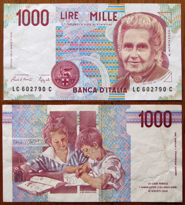 マリア・モンテッソーリは、イタリアの1000リラ紙幣(1990年から1998年まで印刷)に描かれた唯一の女性です。