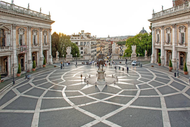 3つの建物の柱廊と大きな階段によって、広場は記念碑的で演劇的な空間となり、中央にはローマの執政官マルクス・アウレリウスの騎馬像がそびえ立っています。