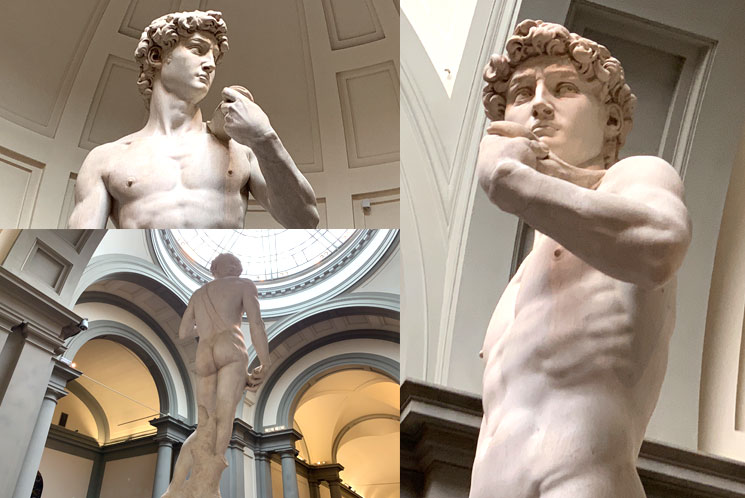 1500年頃にフィレンツェに戻ると、1504年に最も有名な彫刻の一つである『ダヴィデ像』を完成させました。当初は市役所であるパラッツォ・ヴェッキオ(旧政庁)の外、シニョーリア広場に設置されました。この像は間違いなく西洋美術史上、最も知られた作品の一つであり、現在はフィレンツェのアカデミア美術館に所蔵されています。